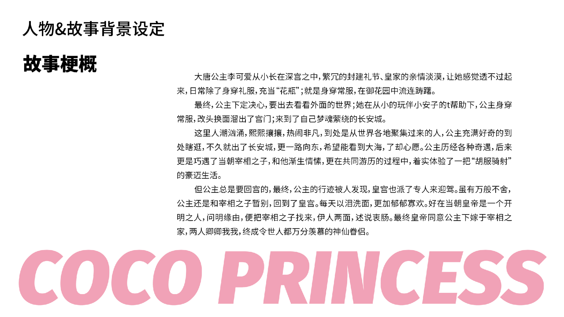 这里人潮汹涌,熙熙攘攘,热闹非凡,到处是从世界各地聚集过来的人,公主充满好奇的到处瞎逛,不久就出了长安城,更一路向东,希望能看到大海,了却心愿。公主历经各种奇遇,后来更是巧遇了当朝宰相之子,和他渐生情愫,更在共同游历的过程中,着实体验了一把“胡服骑射的豪迈生活。